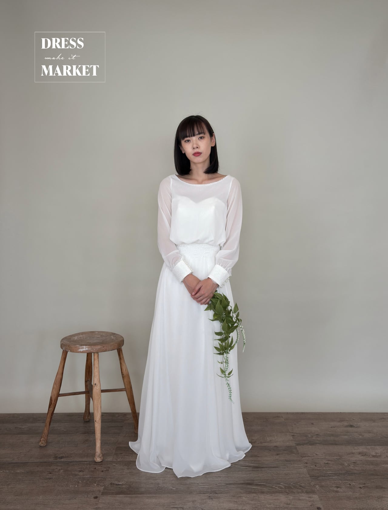 【3営業日以内に発送】¥47,800(税別)ウェディングドレス ウェディング購入 結婚式 フォトウェディング ロングスリーブドレス オフホワイト *DM100026