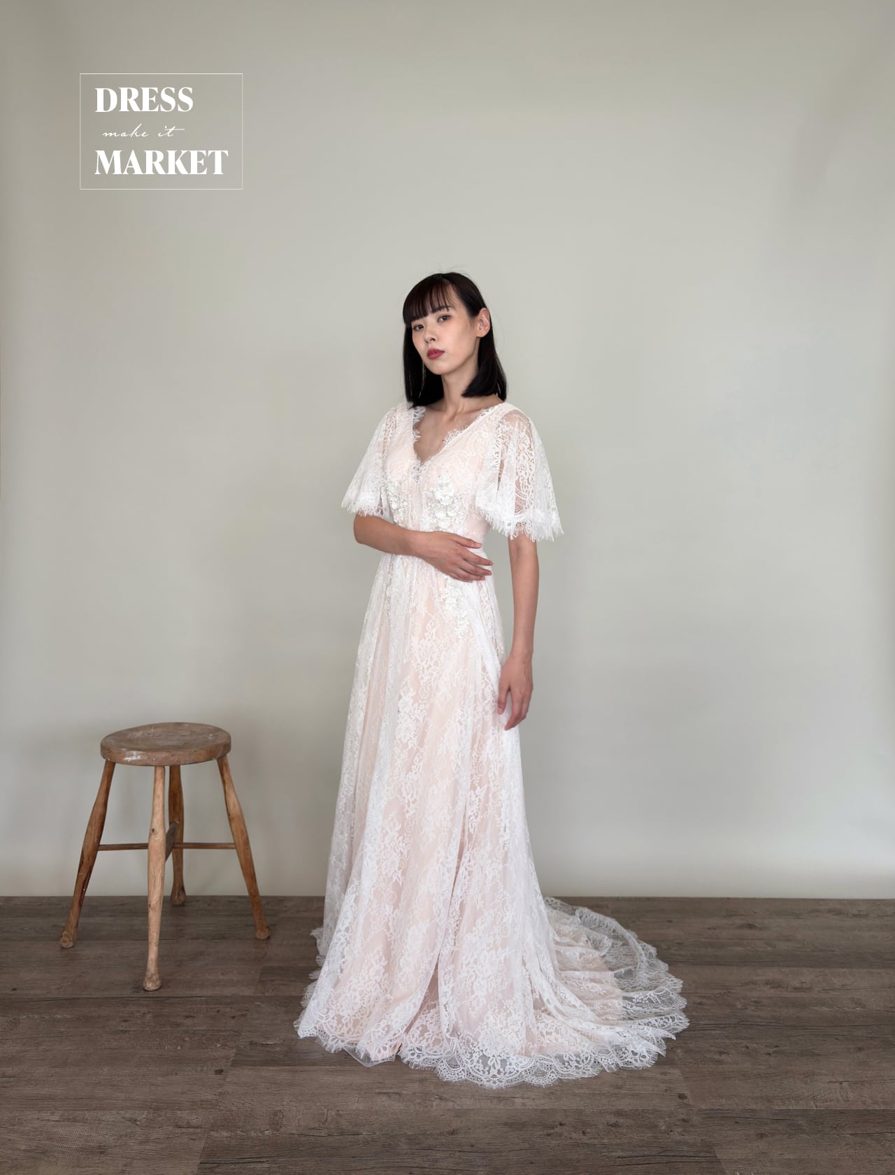 【3営業日以内に発送】¥44,800(税別)ウェディングドレス ウェディング購入 結婚式 フォトウェディング Aラインドレス アイボリー *DM100036